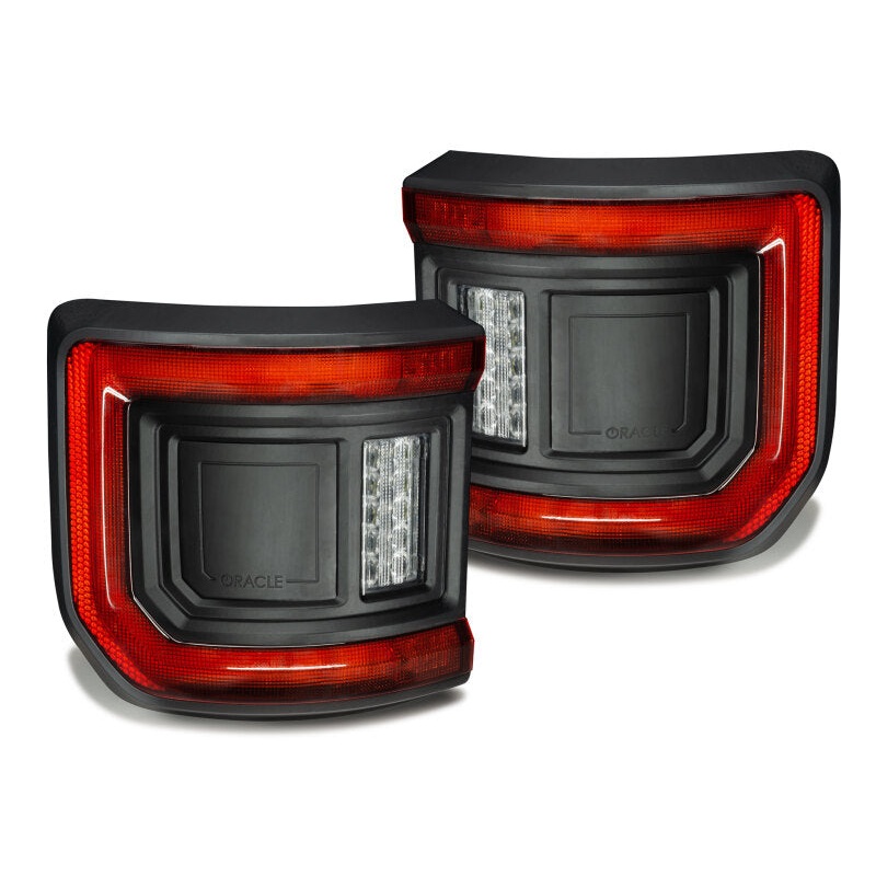 Designed to fit flush with the truck bed of the Jeep Gladiator, the new JT Flush Tail Lights from ORACLE Lighting offer new LED features and improved styling. This innovative design is a sleek tail light for Jeep Gladiators that wraps tightly around the truck. Protruding out significantly less than the factory tail lights, this low-profile design avoids damage while trail riding. Because of the nearly flush wrap-around design, the lighting can be visible from any rear angle, making it a unique solution for the Jeep. These Jeep Gladiator tail lights provide improved aesthetics and functional LED lighting features including high-powered reverse lights and signature perimeter lighting. In addition to standard features, the plug-and-play design features an enhanced reverse function and caters to the Jeep’s optional cross-traffic sensor. The reverse light features 12 high-powered LEDs for optimal rear illumination. The cross-traffic sensor can be swapped directly over from the factory assembly and easily installs into the ORACLE Lighting tail lights for Jeep Gladiator. These flush-mount tail lights are compatible with base and LED packages. Gain sleek styling that compliments the original body lines and tons of innovative features. With the superior quality and durability that ORACLE Lighting is known for, these tail lights are the perfect upgrade for your Jeep Gladiator!